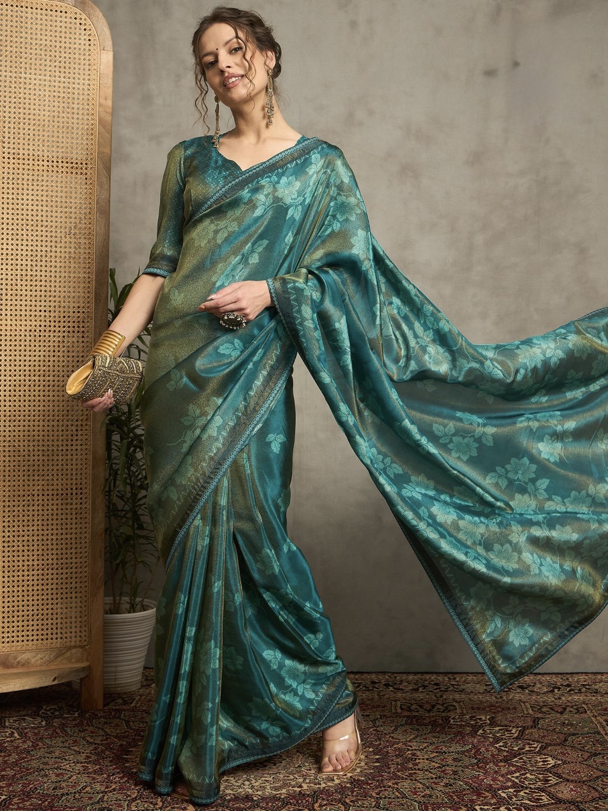 | 4 | Teal / Peacock Green | A vibrant jewel tone with a distinct oceanic green-blue luster and scattered floral sprays. |
